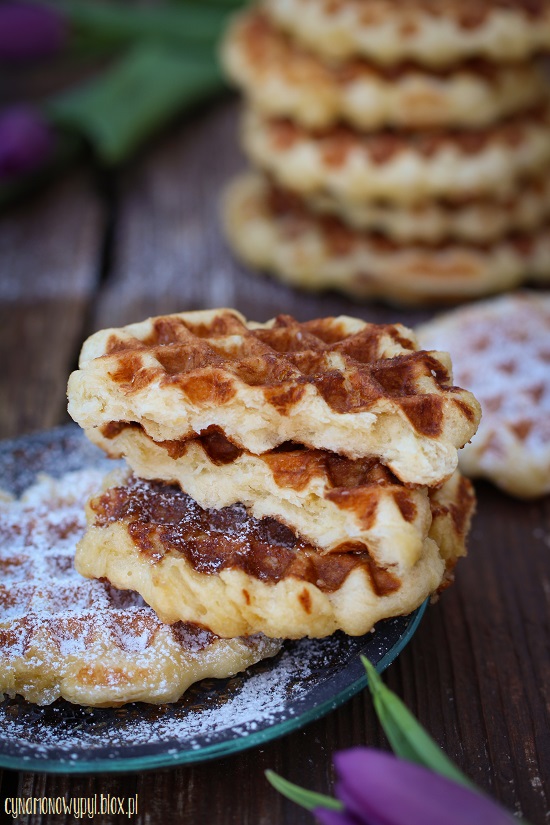 Jeszcze ciepłe nadziewamy konfiturą i lukrujemy .