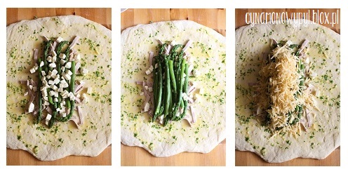 Po wyrośnięciu ciasto wykładamy na stolnicę i wałkujemy na grubość 1,5cm. Szklanką wykrawamy krążki i pozostawiamy do ponownego wyrośnięcia na ok. 30 minut.